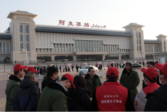 派出接站工作组奔赴阿克苏火车站执行接站任务。接站教师、学生志愿者全天候、全身心投入到接站工作中,确保每一位学生和家长安全抵达校园。