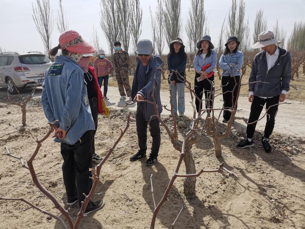 在47团农业发展服务中心,团队通过走访、查阅资料,了解各连队施肥和石硫合剂的喷施进度,并对枣树修剪,树形的培养,扩冠促果等管理技术方面进行了一对一的详细讲解与现场指导。