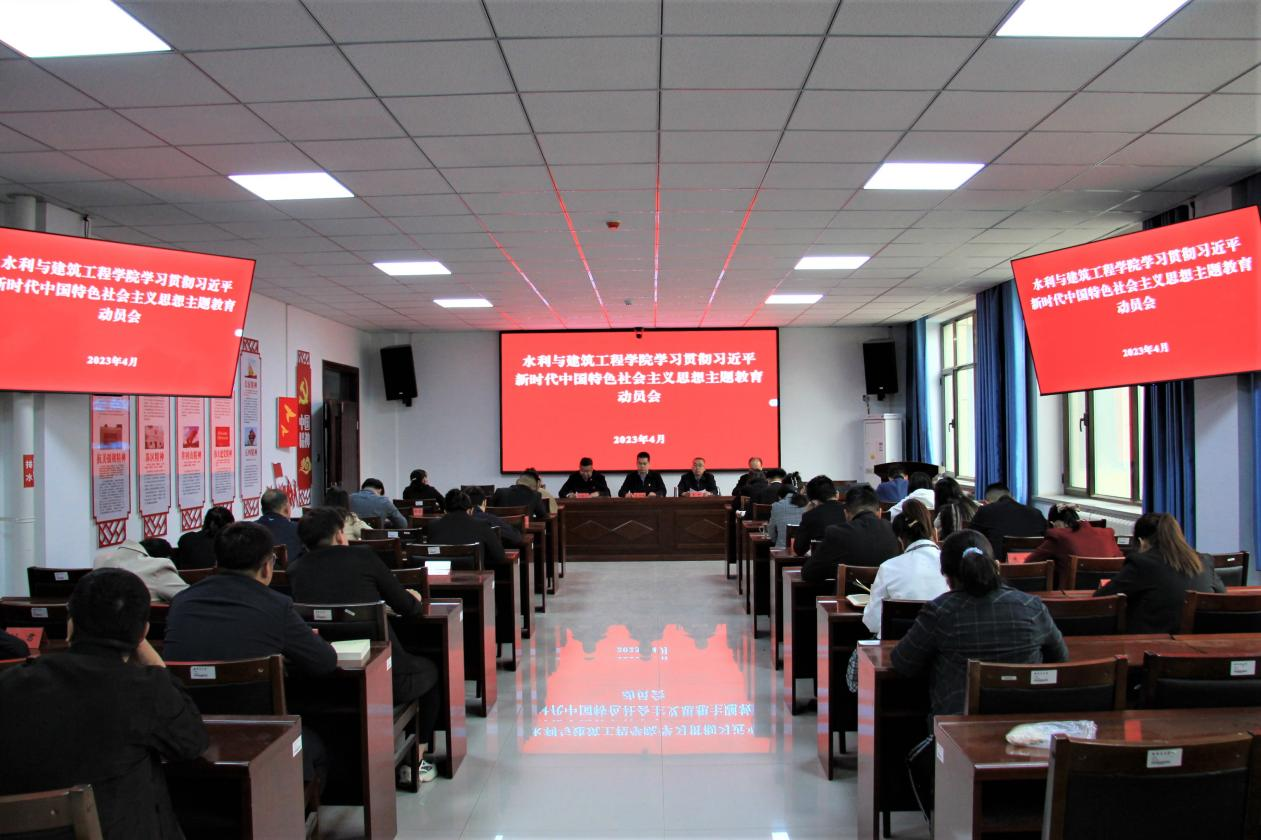 4月22日,水利与建筑工程学院深入开展学习贯彻习近平新时代中国特色社会主义思想主题教育动员大会。学院领导、各党总支、党支部书记、支部委员参加,学院党委副书记李新主持会议,在工科实训大楼一号会议室召开,