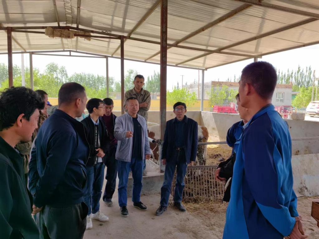 第五分队成员胡建军、郑毛亮、余复昌、方雷一行四人来到多斯库里村牛、羊养殖小区实地调研,针对养殖户肉牛养殖过程中饲草饲喂不合理、日粮搭配不合理、青贮饲料霉变情况等问题,及时提出了解决办法。同时,针对牛、羊布病防治,犊牛腹泻、春季驱虫、消毒、焦虫病防治等问题,现场进行解答和技术指导。