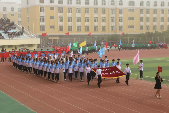 化工学子着渐变蓝衣,如颗颗蓝色繁星点缀在盎然的春季,鼓舞每一个热爱运动,热爱舞蹈,热爱生活的胡杨青年奔向操场。