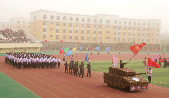 随着乐声响起,身披沙漠迷彩战衣的“积淀号”坦克映入眼帘,机电男团迈着优雅的步伐走向主席台,这是一支温柔与力量并行的队伍。他们手执玫瑰,高举榔头,他们精神抖擞,气宇轩昂,他们健硕的身姿中带着一抹温柔,展现着机电工科人独有的浪漫,同心协力是他们彼此的默契,顽强拼搏是他们永恒的信念,做机电人,铸胡杨魂是他们不懈的追求。