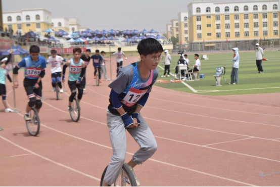 “第一次看见学长学姐的奖牌,我的眼睛流露出了羡慕的神情,夺冠的种子此刻在我的心里发了芽。”满怀着期待,他第一次踏上了独轮车,炽热的激情充斥着他的内心。