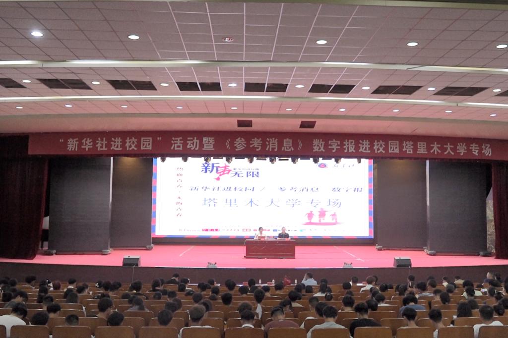 《参考消息》报社参考智库副主任陈向阳、新华社新闻信息中心新疆中心事业拓展部主任杨柳、新华社新闻信息中心新闻中心报刊发行部副主任刘宾,以及宣传部、学工部、团委负责同志,思政课教师、辅导员、教工通讯员、全媒体中心记者、校园各媒体平台学生记者、各学院学生代表等参加。讲座由党委宣传部部长陈蕾主持,在文科楼B座报告厅举行。