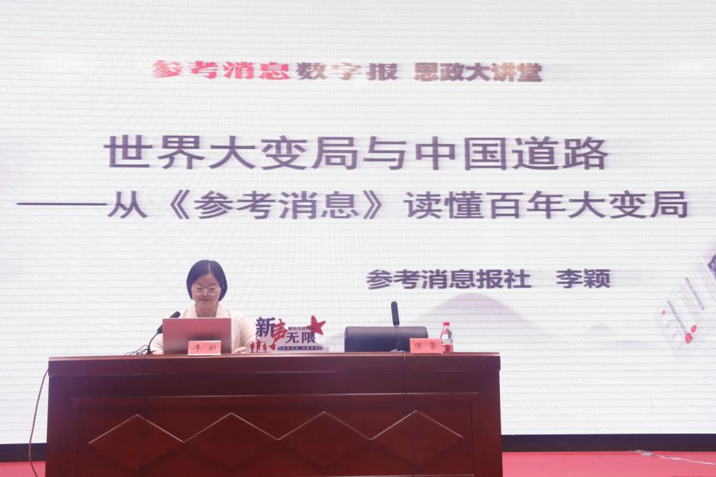 《参考消息》报社总编室主任李颖作了“百年大变局与中国道路——从<参考消息》读懂大变局”专题讲座,从力量之变、科技之变、秩序之变、道路之变四个维度阐释了世界之大变局的核心、动力、要素、关键等内容。鼓励青年学生读懂“两个大局”,胸怀“国之大者”,为强国建设、民族复兴、人民幸福贡献智慧和力量。