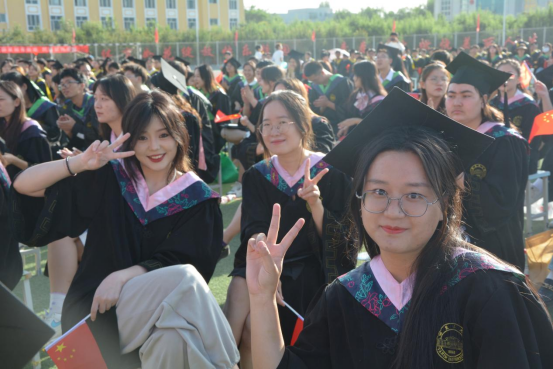 毕业生们以学院为单位,与老师们、导师们一起,整齐划一地坐在凳子上,大家有说有笑,十分激动,热切期待这个喜悦时刻的到来。