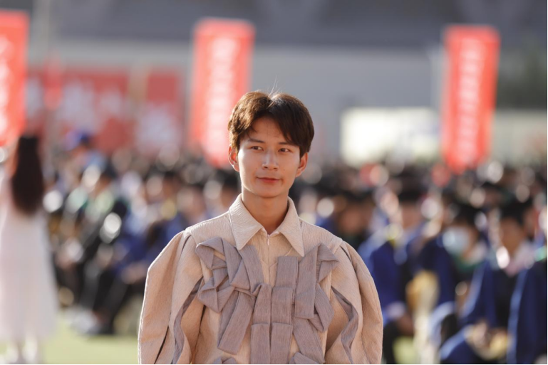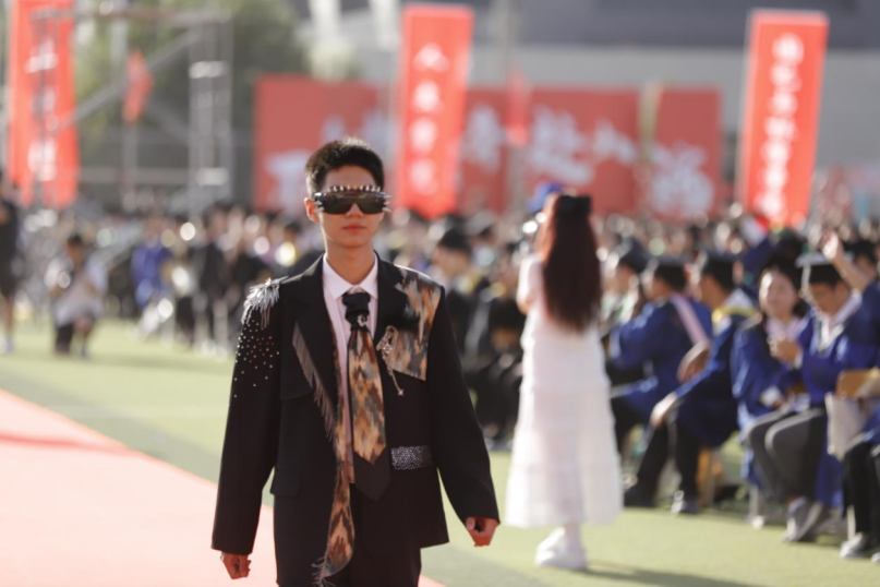 2023年毕业典礼暨学位授予仪式上,由人文学院服装与服饰设计专业毕业生带来的实践课作品展“万物生长”,给即将离校的毕业生送上了一份特殊的祝福。