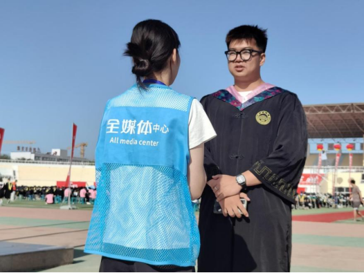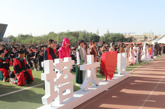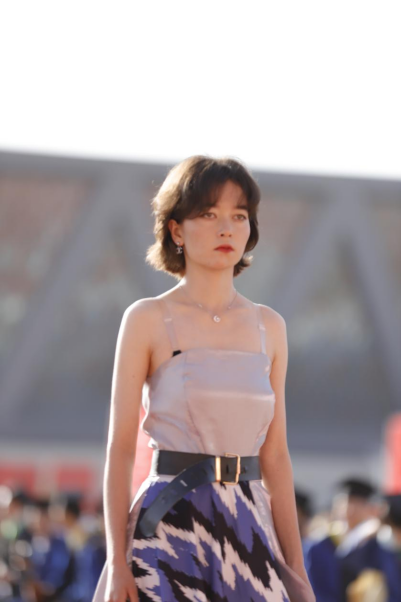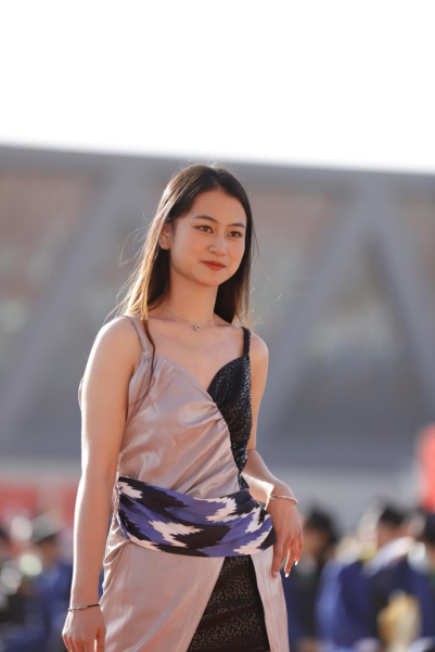 机械电气化工程学院电气工程2022级5班刘方雨函说:“我很激动可以盛装参加今年的毕业典礼,在师生面前展示这件极具民族特色的服装,展现了我们胡杨学子的风采。踏上红毯的那一刻,我觉得一切都是美好的。”