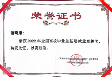 近日,教育部、中国教育发展基金会公布了2022年“全国高校毕业生基层就业卓越奖”名单,学校推荐的2014届农学专业毕业生张合、2016届应用化学专业毕业生范晓康分获此荣。