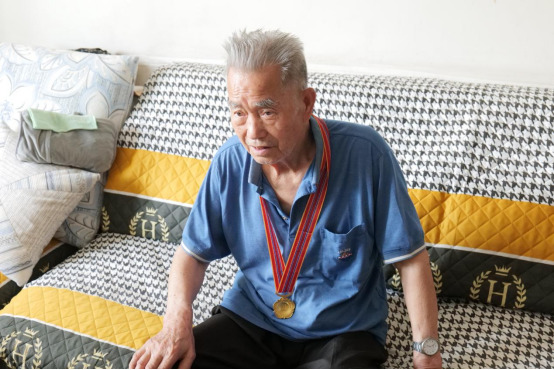 在李战英的家里,那枚“中国人民志愿军抗美援朝出国作战70周年”纪念章,在太阳的照耀下熠熠生辉。