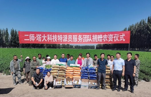 科技特派员团队针对现阶段辣椒生长特性,为“加工辣椒节水结肥精简高效栽培示范田”科学配方,捐赠2.4万余元的农资,并向种植户们讲解了肥料、药剂的功效及使用方法。通过送农资、送技术指导服务,为二十四团农业发展和乡村振兴提供强有力的科技支撑。(文:柳维扬/摄:温雪珍等)