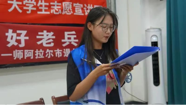 宣讲团成员将前期寻访的32位军垦前辈的事迹汇编整理成册,走进阿拉尔市新苑社区、南北苑社区、十一团中学、十二团等地,以PPT宣讲、视频展示、发放宣传单的形式向青少年讲述军垦前辈的光辉事迹,引导青少年传承红色基因,让爱国主义精神在心里生根发芽。