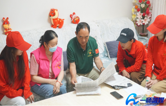 宣讲团成员和退伍军人事务局工作人员走近抗美援朝老战士、对越自卫反击战老战士谢宗琪、“冰峰五姑娘”之一的姜同云等9位老军垦身边,聆听他们的奋斗故事和对当代青少年成长成才的重托和建议,并拍摄老兵纪念照,为他们送上老兵致敬礼包。