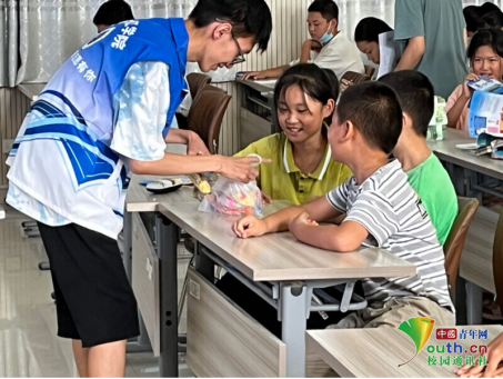 图为团队成员与现场的青少年谈心,为其解决生活与学习中遇到的困难,使其脸上露出如阳光灿烂般笑容。中国青年网通讯员左大山供图