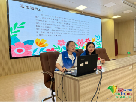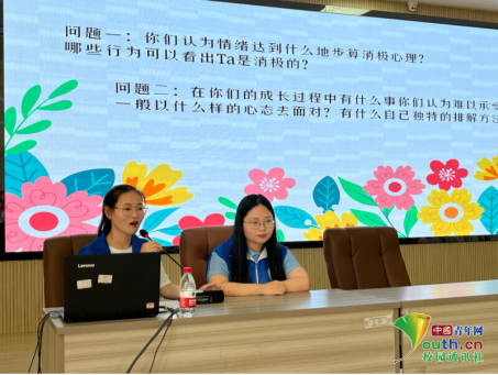 图为团队宣讲人通过向台下的青少年提问让青少年对消极心理进行更深层次的理解。中国青年网通讯员龙云美供图