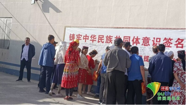 图为动员讲话结束后村民在签名墙上签字。中国青年网通讯员陈月供图
