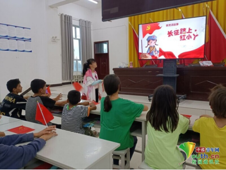 图为团队成员在给小朋友们讲解长征故事。中国青年网通讯员陈月供图