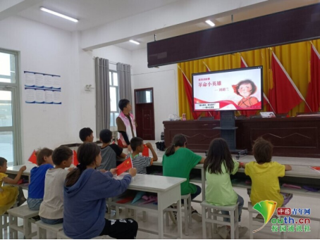 图为团队成员在给小朋友们讲解红色英雄故事。中国青年网通讯员陈月供图