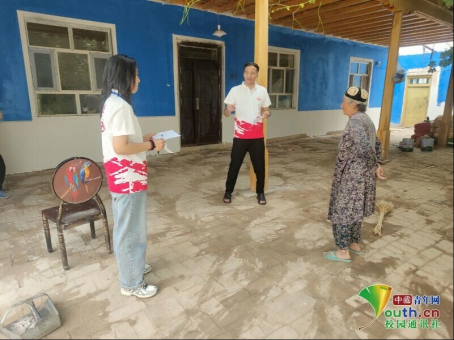 图为实践团队员在调研过程中询问村民日常饮食情况。中国青年网通讯员贾茜摄