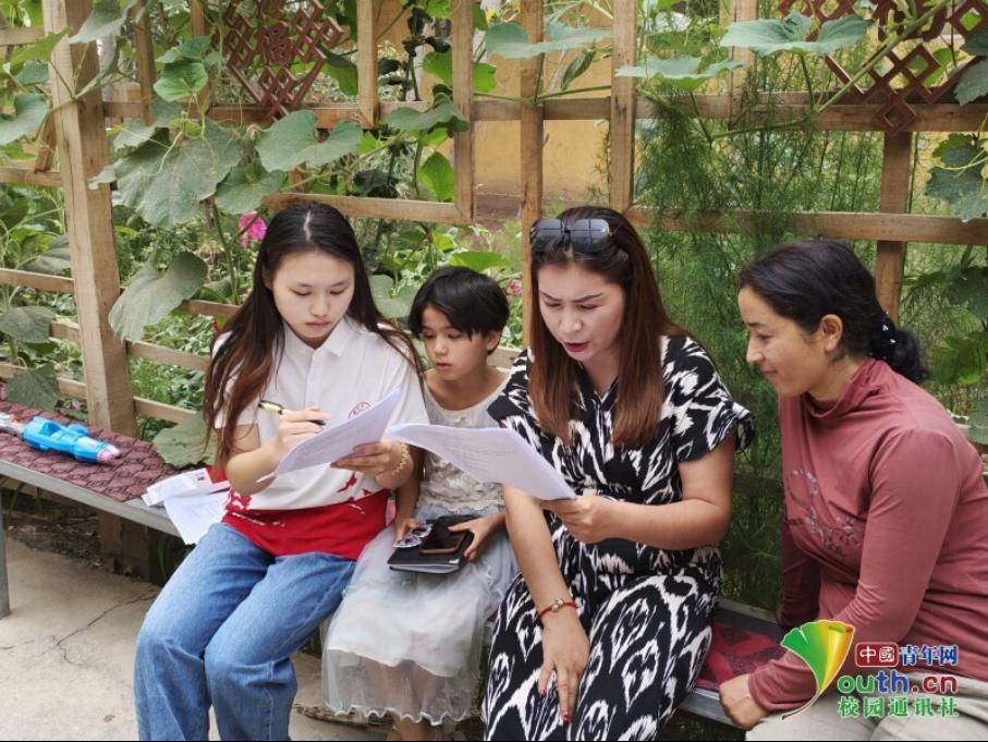 图为实践团成员在村民家中记录问卷内容。中国青年网通讯员彭兆德供图