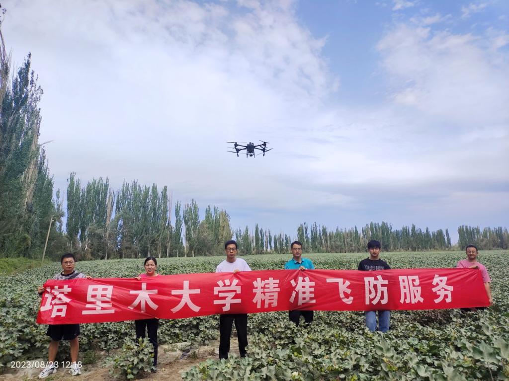 近日,我校信息工程学院精准飞防服务团队成员张晓副教授、王冬副教授、张楠楠副教授一行赴第一师十二团二十八连开展“高效飞防,精准保棉”服务。