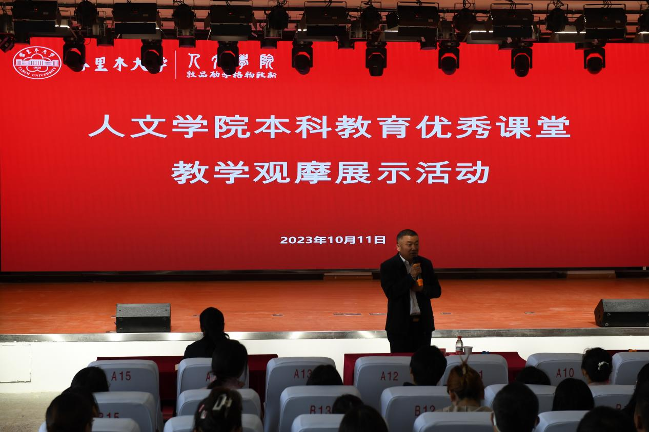 10月11日,人文学院组织开展本科教育优秀课堂教学观摩展示活动。党委常委、副校长石长青出席,院领导、全体教职工及教育类专业研究生参加。活动由人文学院院长肖涛主持,在新文科楼518报告厅举行。