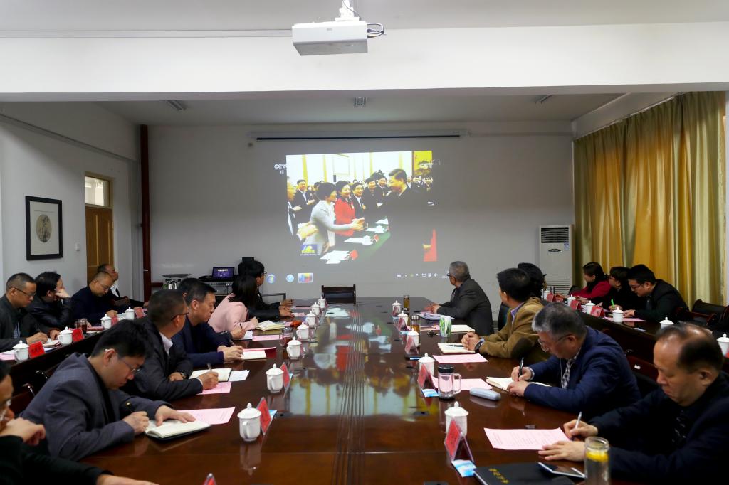 18日下午,开云app体育网页登录不上 党委第一时间组织学校领导,有关部门、学院负责人、思政课专兼职教师代表,一起认真收看中央电视台新闻联播关于习近平总书记主持召开学校思想政治理论课教师座谈会的现场报道,深入学习领会和交流研讨总书记在学校思想政治理论课教师座谈会上重要讲话精神。总书记重要讲话精神在塔大广大党员干部和师生员工中引发热烈反响。