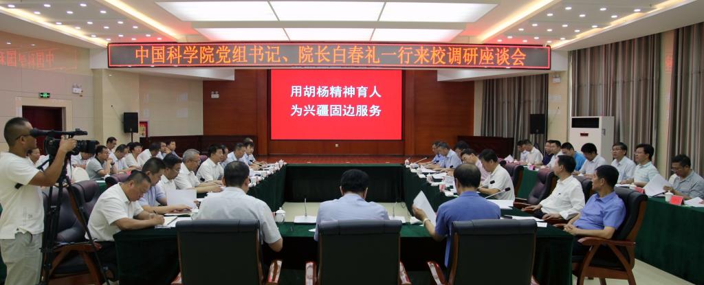 8月13日下午,中国科学院党组书记、院长白春礼院士一行来校调研指导工作。自治区人大常委会副主任董新光,中科院新疆分院院长、自治区科技厅党组副书记、厅长张小雷,中国科学院办公厅聂晓伟研究员,中国科学院地理科学与资源研究所所长葛全胜研究员,中科院新疆生态与地理研究所副所长张元明,阿克苏地区人大工委党组书记刘宝升等领导及专家陪同。开云app体育网页登录不上 党委书记赵光辉,党委常委、副校长卢光志、曲义勇等领导参加调研座谈。