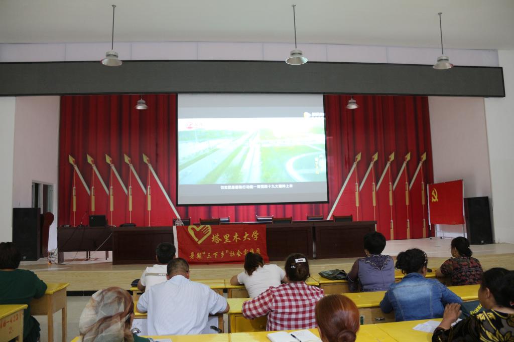 调研团为职工进行影片展播《砥砺奋进,圆梦中国》。影片讲述了兵团建设发展历程。活动目的是鼓励职工不忘初心,坚守使命与重担,为南疆建设发展贡献力量。