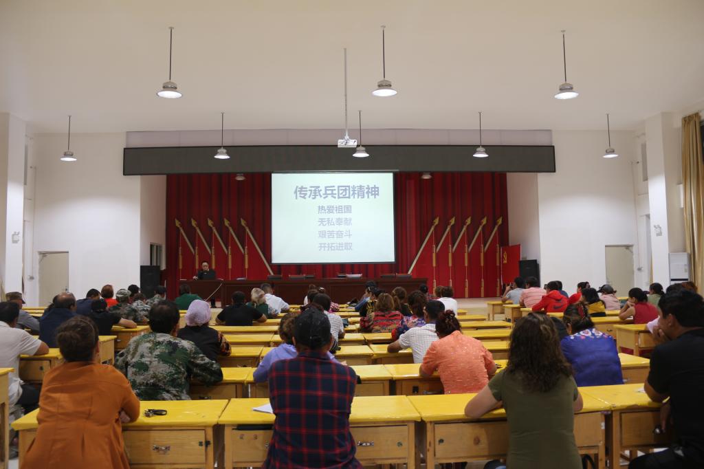 工作队队长徐崇志围绕兵团精神“热爱祖国,无私奉献,艰苦奋斗,开拓进取”十六个字展开了宣讲,介绍了新中国的成立发展和兵团的建设发展历程。希望大家不忘初心,砥砺奋进,建设好新时代的兵团,为实现新疆工作总目标做出新的更大贡献。