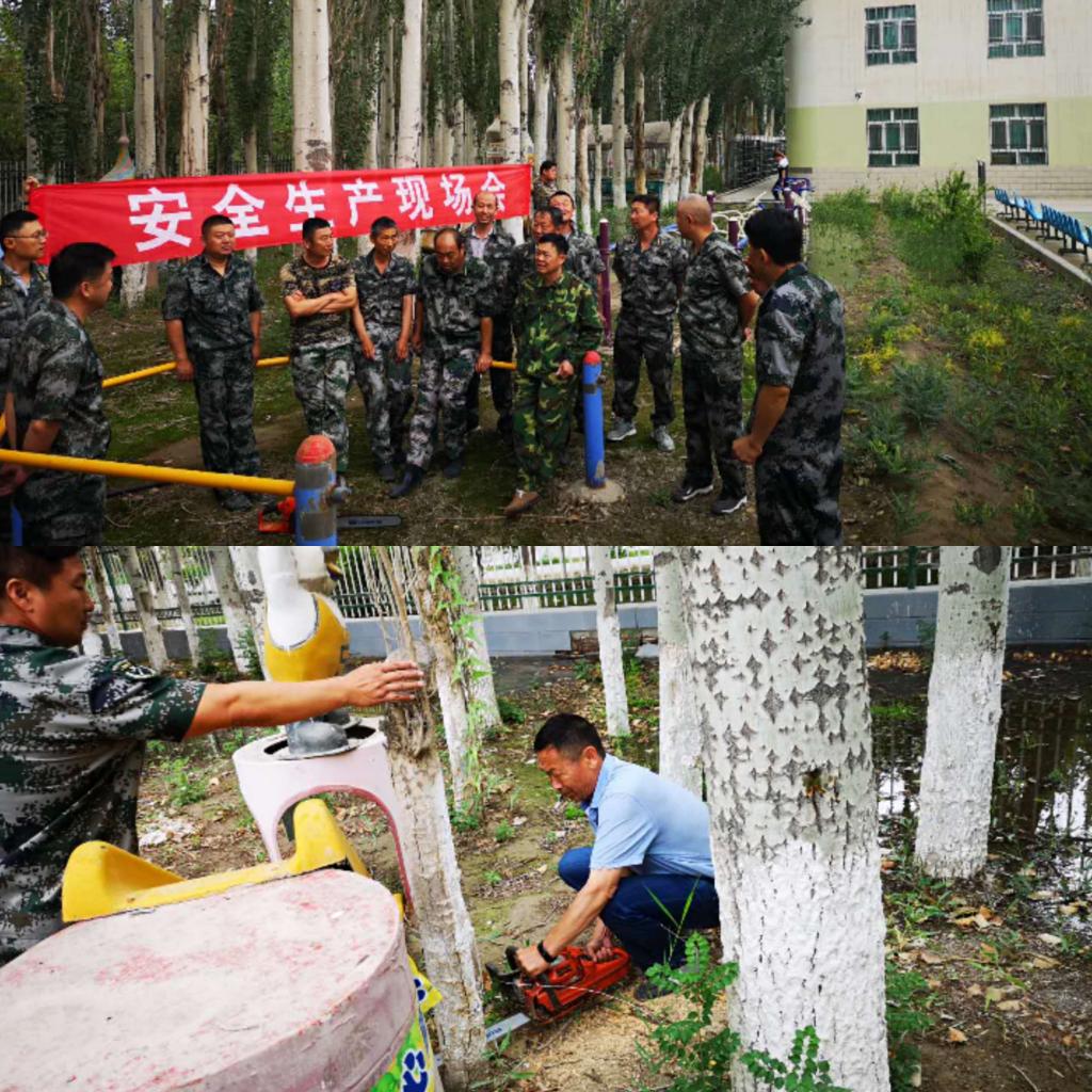 在排查到幼儿园有枯树、死树等安全隐患时,后勤管理处组织全体党员干部,及时到达现场处理,并召开专项安全生产现场会,严格按照安全操作规程作业。通过大家辛勤劳动,在排除风险隐患基础上,又提高了安全操作意识,用实际行动保障校园安全。