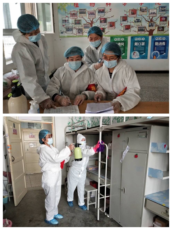 他们有的身体不好,有的孩子没人带,有的老人无法照顾,有的快退休了......但他们一直坚守在抗“疫”第一线。接到学院的任务安排后,她们没有一句怨言,简单收拾了几件换洗衣服,就主动投身到学生宿舍楼开展服务工作。“在校的老师,每家都有或多或少的困难。但总要有人承担起这份责任,组织有需要,我必须上!”谈及家里的困难,楼层长老师们如是说。