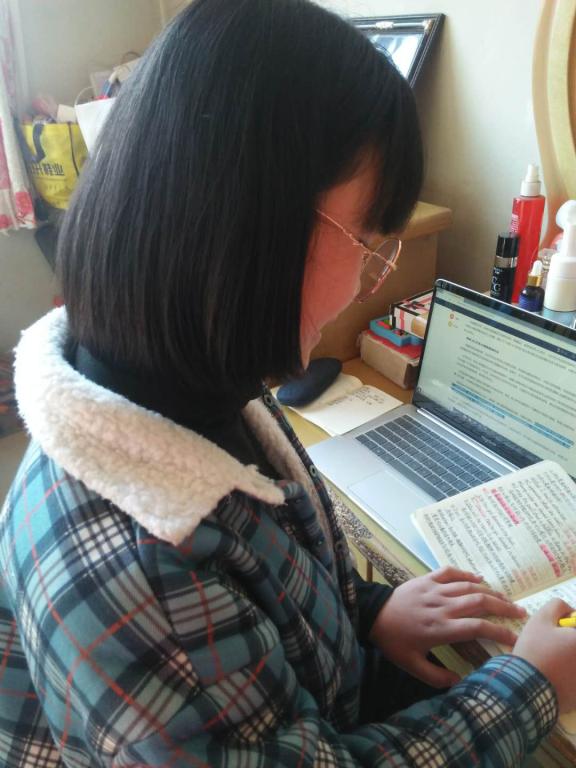 计算机科学与技术2019级3班荣佳琪同学,家住内蒙古通辽市。她说:“这是我第一次参加在线学习,不同于传统的授课方式,网络学习可以倍速、回放重复学习,使我能够温故而知新。大量的学习资料可以让我在上课前预习,课堂效果更好。作为一名计算机专业的学生,我选择了《互联网与营销创新》这门公选课,通过学习让我了解到了互联网对现在生活的便捷。我很喜欢网络授课方式,让我们的学习更加多元化,我会像在学校一样认真学习。”