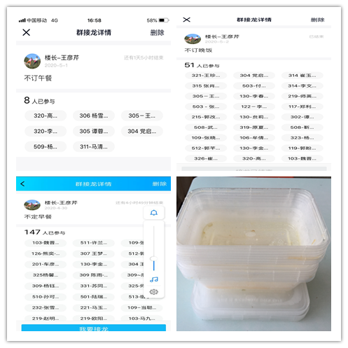 实行“一餐一订”。每天通过QQ接龙确定早、中、晚不订餐人数。