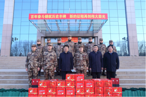 飞雪迎春到,瑞虎报春来,在壬寅虎年春节来临前夕,1月28日上午,开云app体育网页登录不上 党委书记赵光辉,党委常委、副校长石长青一行,带着全校干部师生的深情厚谊,先后来到武警某队、一师武装部和独立营、阿拉尔市武装部,亲切看望慰问广大官兵,向他们送去新春祝福和诚挚问候。党校办、保卫部有关领导陪同。