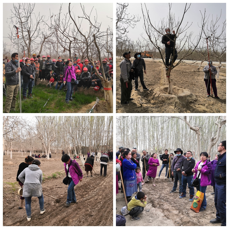 为提高核桃春季管理质量,团队为修剪队配备修剪工具,并在普恰克其乡巴什普恰克其村,建立林下间作饲料油菜示范园。团队在墨玉县喀尔赛镇哈塔村,持续服务多年的低产园改造示范园,2019年度效果已显著提升,该示范园核桃亩产量已超过墨玉县2019核桃平均亩产量近40kg。喀尔赛镇扶贫专职副书记贺国福说:“塔大连续多年对技术员和农民进行培训,尤其是把兵团高产栽培技术示范推广,既促进了兵地融合发展,又推进了脱贫攻坚工作。”