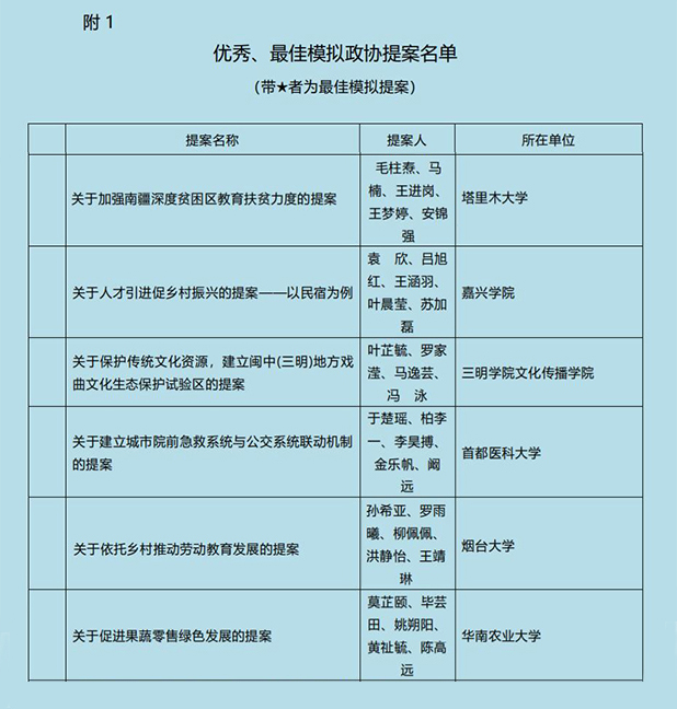2019年全国青少年模拟政协提案征集活动经过省级团委推荐、团中央初审、专家评审、网络投票、评审会终审等环节,历时7个月,于3月21正式圆满完成,我校获得优秀组织单位和优秀提案奖各1项,其中毛柱焘、马楠、王进岗、王梦婷、安锦强同学提报的《关于加强南疆深度贫困区教育扶贫力度的提案》脱颖而出,荣获大学组优秀提案奖。