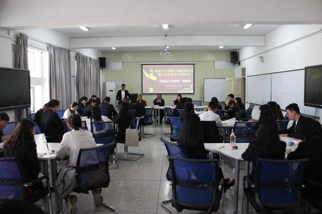 9月22日,学校第六届研究生会开展“不忘初心、牢记使命”主题教育。党委研究生工作部部长高庆华、副部长孟婷婷出席,部门工作人员、第六届研究生会以及全体研究生班委参加,活动在行政楼410举行。
