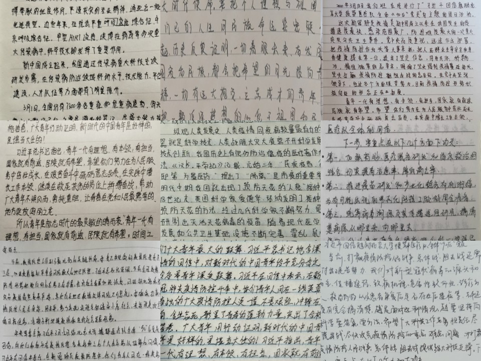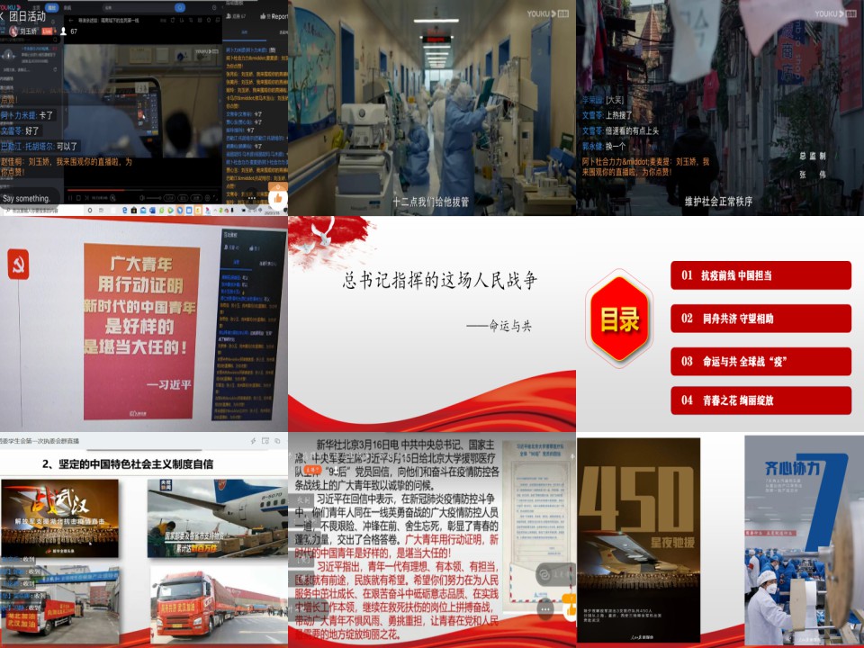 团委学生会、各班级团支部在指导老师和各班主任的带领下通过领学文件、观看视频、分组讨论等多种形式,理论联系实际,学习北京大学援鄂医疗队全体“90后”在新冠肺炎疫情防控斗争中不畏艰险、冲锋在前、舍生忘死的精神和彰显的青春蓬勃力量。