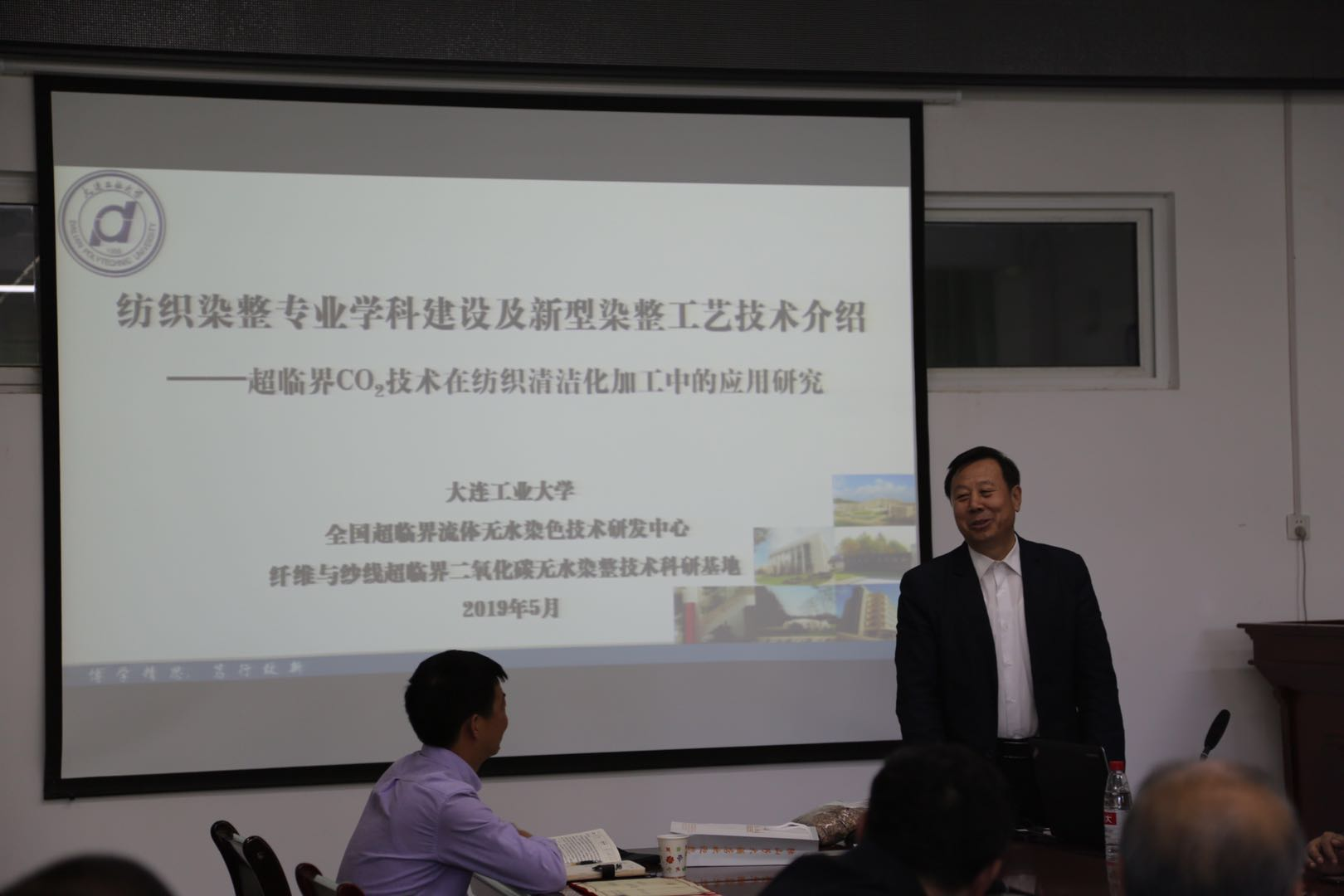 5月14日下午,大连工业大学纺织与材料工程学院院长郑来久教授来校学术交流,在工科楼229会议室作了《纺织染整专业学科建设及新型染整工艺技术介绍》的专题讲座。此次讲座系“名师进校园”系列讲座(七十七期)。机电院纺织工程专业师生以及阿拉尔市周边纺织企业代表聆听了讲座。讲座由机电院副院长龚䶮主持。