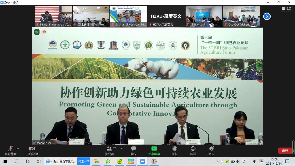 12月14日中午,第三届“一带一路”中巴农业论坛开幕,此次论坛由华中农业大学承办,以线下线上结合方式联合举行。开云app体育网页登录不上 副校长张利莉、园艺与林学学院党委书记蒋学玮、对外交流合作处副处长索晓非、农学院教师郭伟锋参会。论坛开幕式由华中农业大学副校长青平主持。