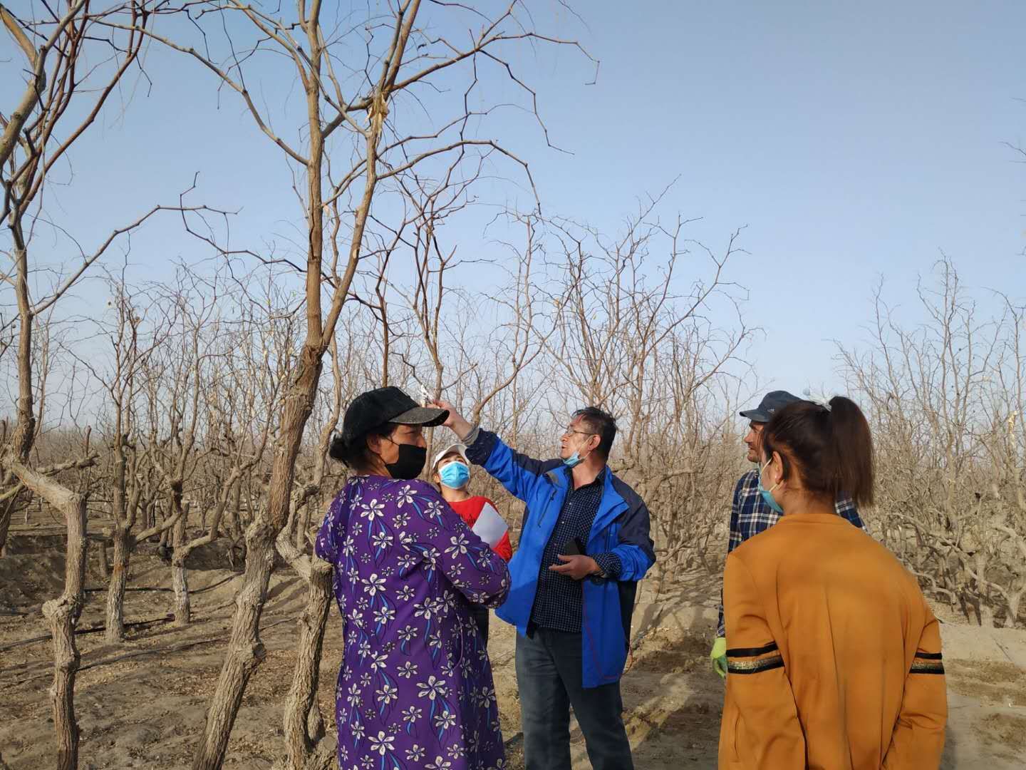 3月17日至19日,科技特派员在皮山农场十一连指导职工枣树疏密。 |