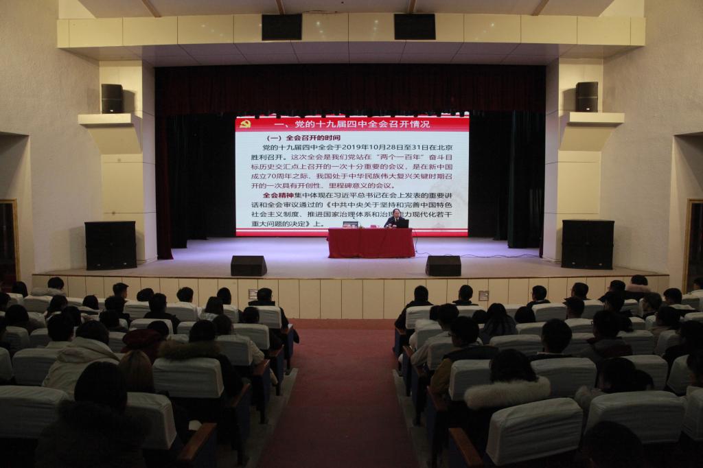 为深入学习贯彻党的十九届四中全会精神,12月4日下午,校长助理、史哲院党总支书记、院长万朝林为史哲院、医学院师生宣讲党的十九届四中全会精神。宣讲会在大学生活动中心举行。
