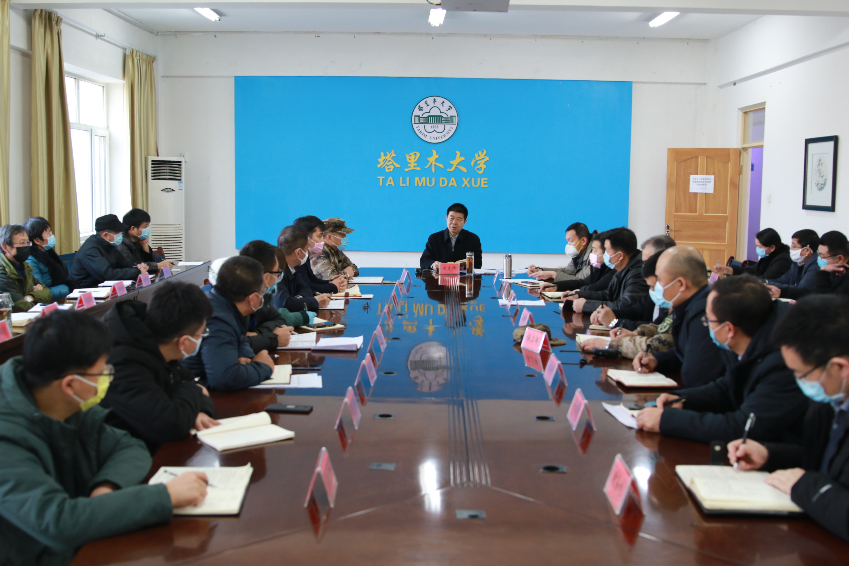 会上,赵光辉传达学习了习近平总书记1月27日对疫情防控工作作出的重要指示精神和自治区、兵团新冠肺炎疫情防控工作视频会议精神。他指出,习近平总书记高度重视新冠肺炎疫情防控工作,始终牵挂人民群众生命安全和身体健康,多次召开会议、听取汇报、作出重要指示,充分彰显了真心爱民、一心为民的深厚情怀,充分体现了我将无我、不负人民的崇高风范。1月27日习近平总书记再次作出重要指示,对疫情防控进一步提出了明确要求,向广大党员干部发出了冲锋号令。各部门各学院特别是各级党组织和广大党员干部要增强“四个意识”、坚定“四个自信”、做到“两个维护”,坚决把思想和行动统一到习近平总书记的重要讲话和重要指示精神上来,必须坚持人民利益高于一切,坚持生命重于泰山,坚持疫情就是命令、防控就是责任,团结带领广大师生员工坚决贯彻落实党中央决策部署,坚决贯彻落实自治区党委、兵团党委和师市党委部署要求,坚定信心、同舟共济、科学防治、精准施策,让党旗在防控疫情斗争第一线高高飘扬。