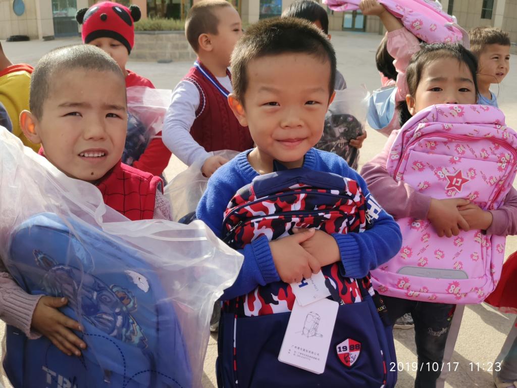 知识启迪梦想,爱心孕育希望。10月17日上午,书包赠送仪式在团幼儿园教学楼门口举行,工作队来到现场,给孩子们发放书包等学习用品。孩子们个个欢呼雀跃,从天真可爱的脸神和炯炯有神的眼神,反映出对知识的渴求。