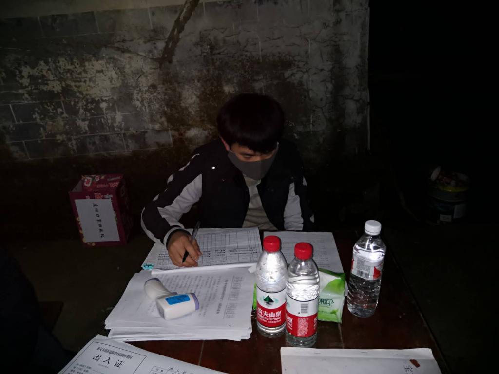 食品质量与安全2019级1班刘永华家在贵州省聚凤乡宝龙村,他每天坐在村门口临时搭建的棚子内,认真记录出入人员的详细信息。他说:“作为塔大学生,我们必须行动起来,为防疫助力,为武汉加油!”