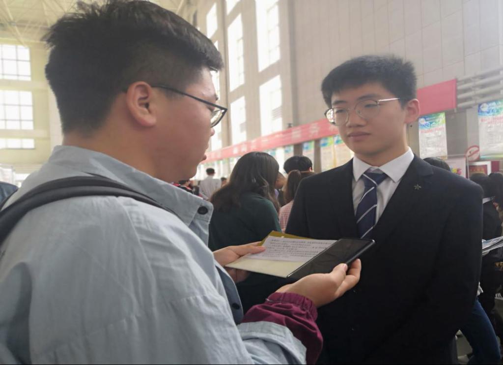 应用生物科学19-1班韩思成说:“这是自己参加第二次招聘会了,自己也做了充分的准备。希望在这次招聘会上能够尽快找到一份合适自己的工作,能够进入一个工作环境好并有较好发现空间的企业。”谈到对学弟学妹想说的话时,韩思成说:“应该在假期多去自己喜欢的公司实习,从而积累经验为以后的应聘做准备。”