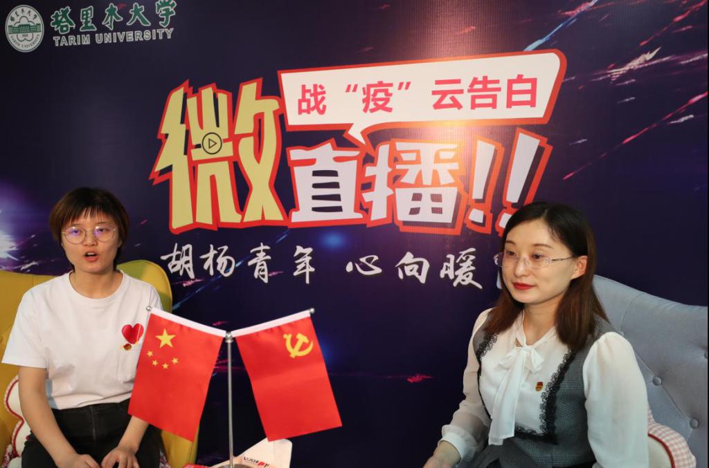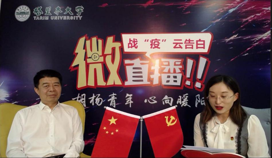 直播最后,连线思政系杜环环老师给大家分享她的青春选择,她说:“青春仿佛是一种宣言,它昭示着自古英雄出少年的激情,渴望找到未来的路。谁的青春不迷茫,但我选择扎根边疆,将青春种在胡杨林里。希望胡杨学子们勇于担当这个时代赋予的历史责任,励志勤学、刻苦磨炼,在激情奋斗中绽放青春光芒、健康成长进步。”
