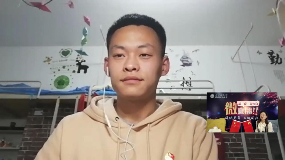 第二环节追梦奔跑,主播现场连线机械电子工程2018级2班宋金亮,与大家分享了他参军的青春故事,他说:“携笔从戊尽义务,从军报国砺青春,从小就有个当兵梦,青春就是需要奋斗。”