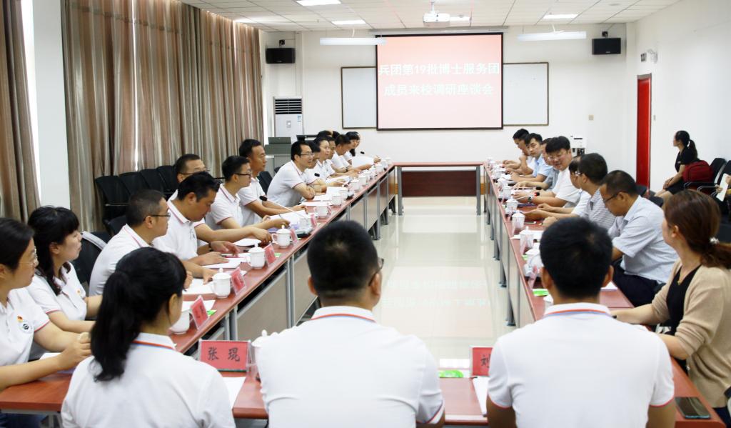 8月23日,兵团博士团团长、党委组织部人才工作处(援疆干部人才服务管理处)副处长王红强带领兵团第19批博士服务团成员来校调研交流,并召开座谈交流会。党委副书记、校长张传辉,党委常委、副校长卢光志等领导参加座谈会。会议由卢光志主持,在南疆双语培训中心三楼一号会议室召开。